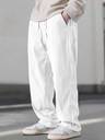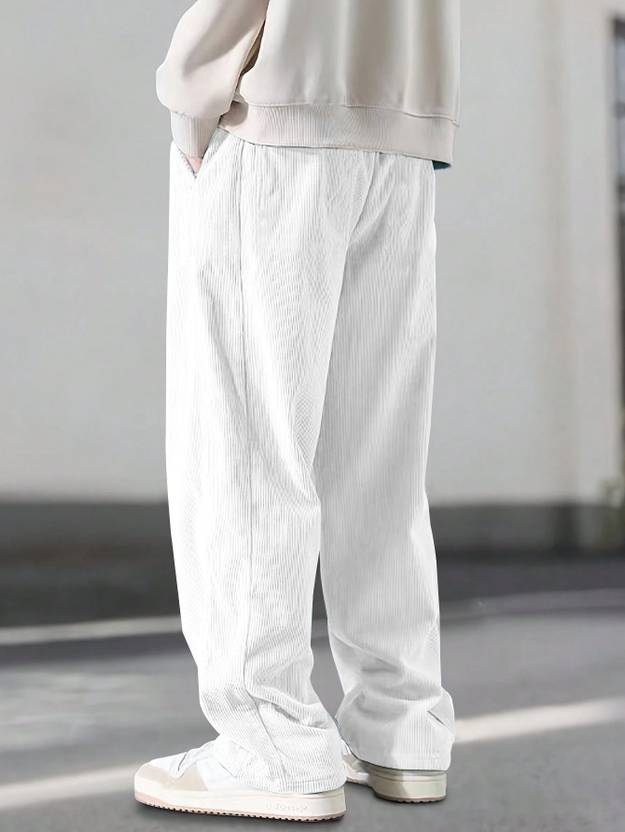 Men Loose Fit White Corduroy Trousers