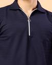 Elevate your casual style with this stylish navy blue polo t-shirt for men. Made from breathable and lightweight fabric, this t-shirt features a textured pattern with a modern half zip design for a contemporary edge. Perfect for daily wear, outings, or smart casual events, it offers a comfortable regular fit and short sleeves to keep you cool and confident all day long.
