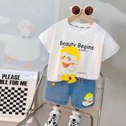* Shorts: The denim shorts are durable and stylish, with a comfortable fit that allows for easy movement. The elastic waistband ensures a secure and adjustable fit for growing children.