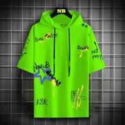 Lieo Trend Printed Men Hooded Neck Light Green T-Shirt