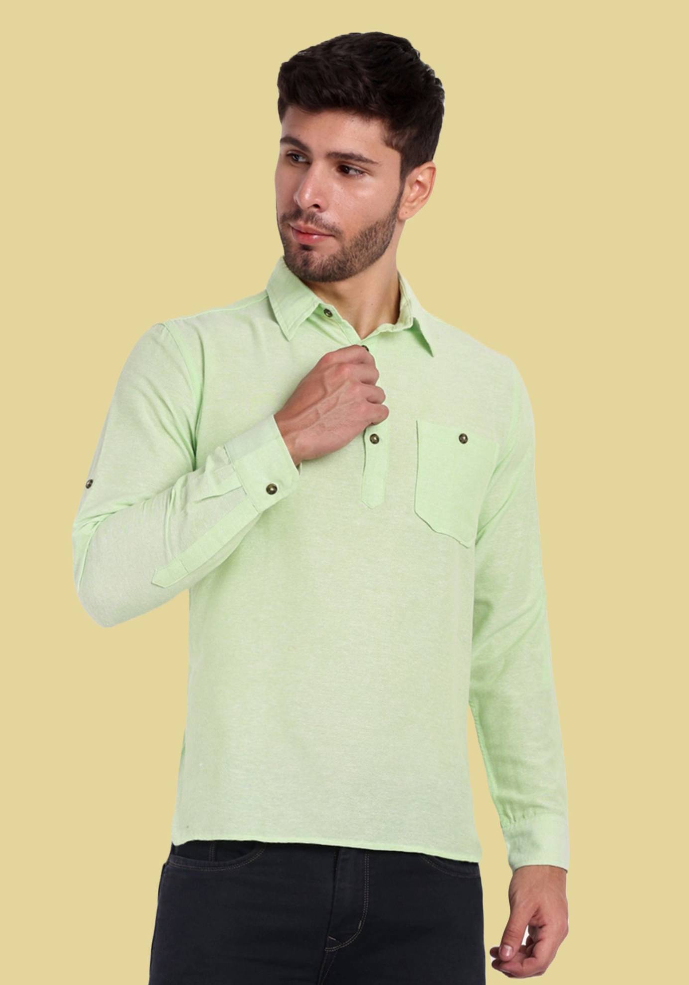 Life Roads Men Solid Pure Cotton Pathani Kurta (Light Green)