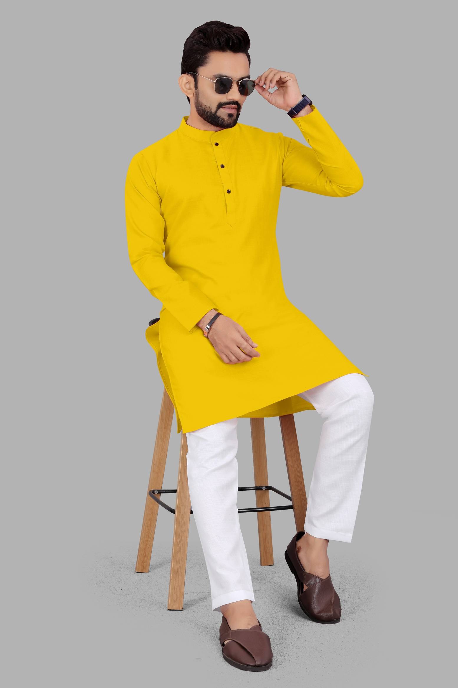 This solid cotton kurta presents a perfect blend of casual elegance and modern versatility, making it an ideal addition to any contemporary wardrobe. Designed for men who value both style and comfort, this kurta stands out with its minimalist aesthetics and smart design details.