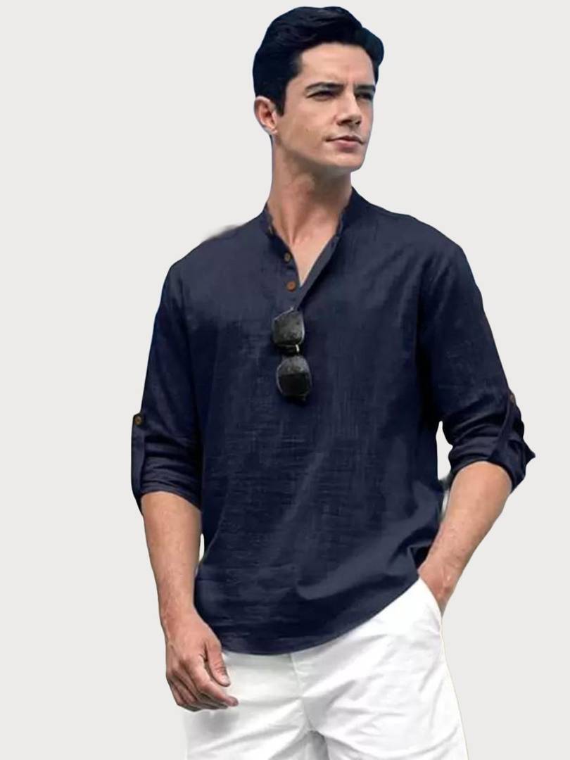 This solid cotton kurta presents a perfect blend of casual elegance and modern versatility, making it an ideal addition to any contemporary wardrobe. Designed for men who value both style and comfort, this kurta stands out with its minimalist aesthetics