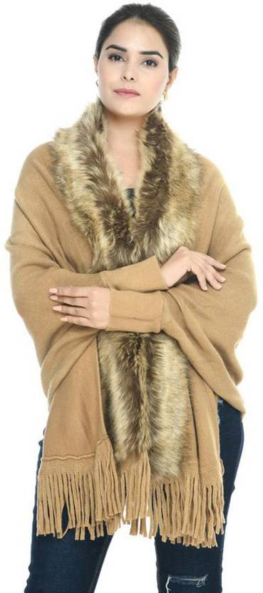 Women Straight Full Sleeve Beige Shrug