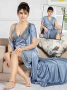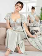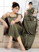 Indulge in luxury and comfort with this stunning satin nighty and robe set from LIFE-TALE. Crafted from soft, silky satin fabric, it ensures a smooth and comfortable feel against your skin. The delicate lace detailing adds a touch of elegance and sophistication, making it perfect for your bedtime wardrobe or special occasions. The matching robe enhances the look while offering extra coverage and style.