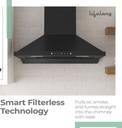 Lifelong LLLACP03 Auto Clean Touch + Motion Control 60 cm Pyramid Wall Mounted Black 1000 CMH Chimney