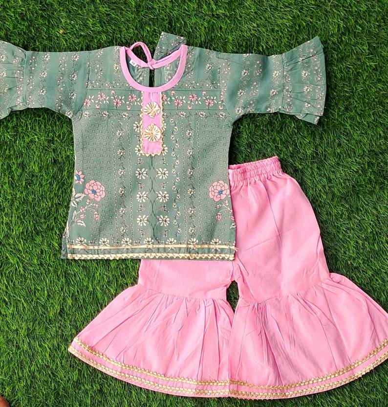 all new branded printed fabric and lace work sold stylish quality sharara top dress for girls. best quality print and color. give you perfect look and stylish look. we recommended you to buy this product from LIFESTYLE JAIPUR