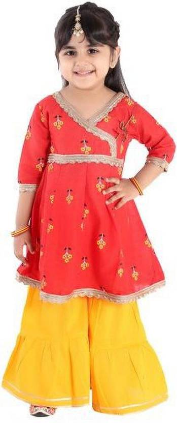 Girls Festive & Party Kurta and Pyjama Set (Yellow Pack of 1)