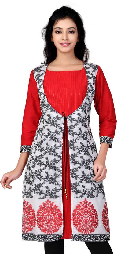 Lifestyle Retail Women Self Design A-line Kurta (Red, White)