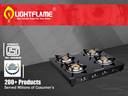 LIGHTFLAME 4 Burner Smart ISI Certified Toughened Glass With 1 Year Warranty Glass Manual Gas Stove (4 Burners)