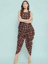 Relaxed fit ankle length dhoti jumpsuit which can easily be worm for a festive event. Accessorise it with a neckpiece and earrings and you are wedding ready. The elasticated waist and comfortable hip silhouette are perfect for the Indian body type. Length of the maxi is apt for average Indian women height. Made from smooth, wrinkle resistant crepe fabric, this jumpsuit is sure to look trendy. It is color bleeding resistant, thereby making it long lasting. Sweat absorbent armpit lining is used to keep away underarm stains.