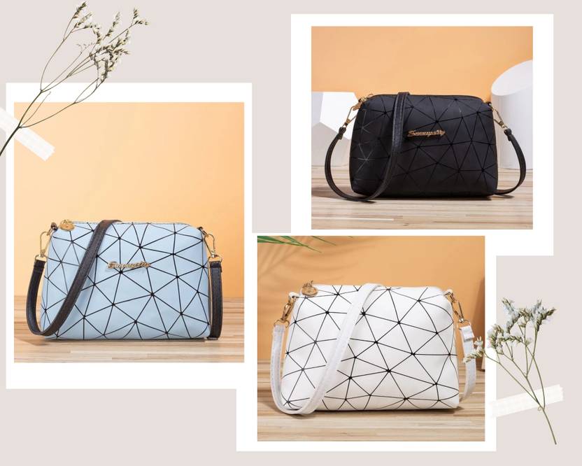 LIKE STYLE Women White, Black, Grey Sling Bag (Pack of: 3)
