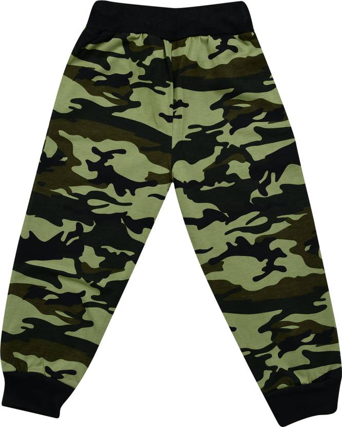 Upgrade your child’s wardrobe with these stylish and comfortable boys' camouflage print track pants. Crafted from a soft cotton blend fabric, these pants ensure all-day comfort, making them perfect for playtime, lounging, or casual outings. The elastic waistband provides a snug fit, while the ribbed cuffs at the ankles give a neat and tapered look. The bold army-brown camo pattern adds a trendy, rugged touch to your little one’s outfit