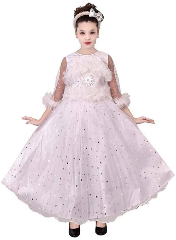Girls Maxi/Full Length Party Dress (Multicolor, 3/4 Sleeve)