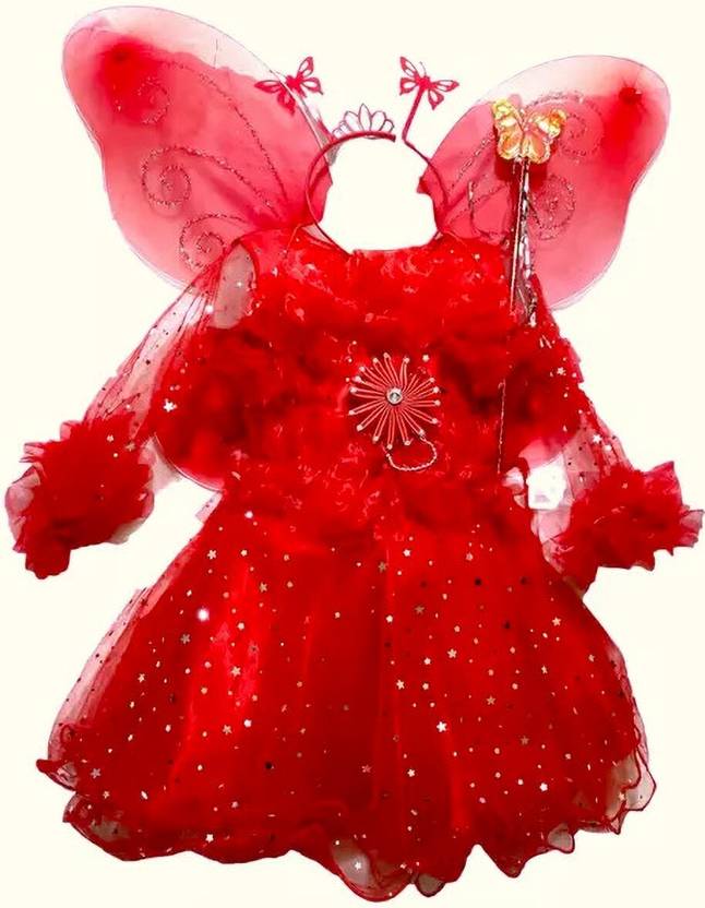 Barbie Girls Below Knee Party Dress (Red, 3/4 Sleeve)