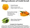 With the help of healthy herbal ingredients, the scrub uses the inherent power of nature to revitalise and nourish your skin. Components like Curcuma longa, often known as turmeric, have anti-inflammatory and antioxidant properties that improve skin health by lowering inflammation and scavenging free radicals. Aloe Vera extract improves moisturisation. Gold oxide works to deliver nutrients and oxygen deeper.