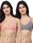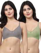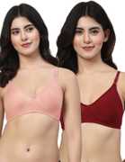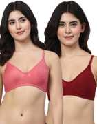 LILY Maroon, Green Seamless Non Padded T Shirt Bra
