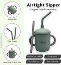 LilyTots Drinking Cup with Lid & Straw for Baby & Kids, Sipper Cup for Toddler Feeding - Silicone (Sage Green)