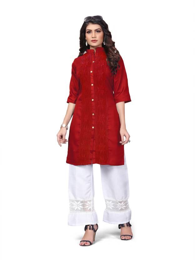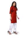 Women Embroidered Pure Cotton Straight Kurta (Red)