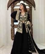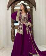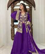 Name : Purple trendy kurta dupatta set Kurta Fabric : Georgette Fabric : Georgette Bottomwear Fabric : Georgette Sleeve Length : Three-Quarter Sleeves Pattern : Embroidered Set Type : Kurta with Bottomwear Stitch Type : Stitched Size : S,M,L,XL,XXL