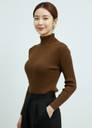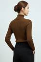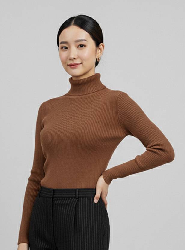 Ribbed turtleneck pullover. Crafted from premium-quality stretchable knit fabric, this sweater hugs your body with a slim, flattering fit while keeping you warm and comfortable. The rich brown shade adds a classic touch, perfect for both workwear and casual outings. Pair it with trousers, skirts, or jeans for an effortlessly chic look all season long.