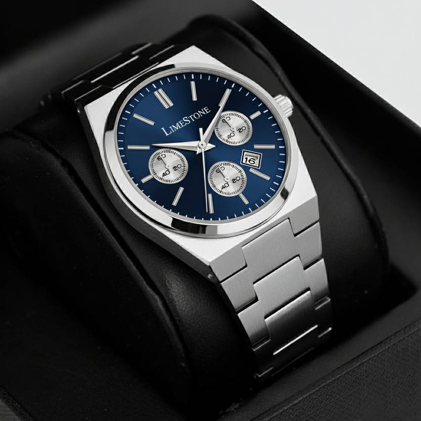 LIMESTONE: Elevate Your Style with Precision and Versatility, ntroducing the LIMESTONE Dummy Chronograph watch, a masterpiece of style and functionality designed for the modern individual. This exceptional timepiece boasts a sleek aesthetic, robust construction, and a range of features that make it the perfect accessory for any occasion. Striking Design, Unmatched Versatility The LIMESTONE Dummy Chronograph features a sophisticated dial with meticulously crafted subdials that emulate the look of a chronograph while maintaining a clean and uncluttered design. Available in a stunning array of 10 vibrant colors, you can effortlessly find the perfect match for your personal style and mood. The luminous hands and markers ensure easy readability even in low-light conditions. Premium Materials, Built to Last Crafted with a durable stainless steel case and a matching stainless steel chain, this watch exudes quality and resilience. The robust construction is complemented by a shockproof mechanism, safeguarding the intricate inner workings from everyday bumps and impacts. Powering the watch is a reliable Japanese battery, guaranteeing accurate timekeeping for extended periods. Functional Date Feature Stay effortlessly organized with the integrated date window conveniently positioned at the 4 o'clock mark. This practical feature ensures you never miss an important appointment or deadline. The Perfect Accessory Whether you're dressing up for a formal event or keeping it casual, the LIMESTONE Dummy Chronograph watch effortlessly complements any ensemble. Its versatile design, combined with the choice of 10 colors, makes it a must-have accessory for any discerning individual. The Perfect Accessory Whether you're dressing up for a formal event or keeping it casual, the LIMESTONE Dummy Chronograph watch effortlessly complements any ensemble. Its versatile design, combined with the choice of 10 colors, makes it a must-have accessory for any discerning individual. Dummy Chronograph Subdials: A stylish nod to chronograph watches, offering a sophisticated look without the complexity. 10 Color Options: Find the perfect hue to match your personal style. Functional Date Window: Stay organized with a conveniently placed date display. Durable Stainless Steel Case and Chain: Ensures long-lasting wear and resilience. Shockproof Mechanism: Protects the watch from accidental impacts. Reliable Japanese Battery: Provides accurate and consistent timekeeping. Adjustable Chain: Customize the fit for optimal comfort. Luminous Hands and Markers: Enhanced visibility in low-light conditions. Become a LimeStone Family.