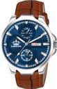 Blue Dial, Time & Date, Leather Strap, Water resistant
