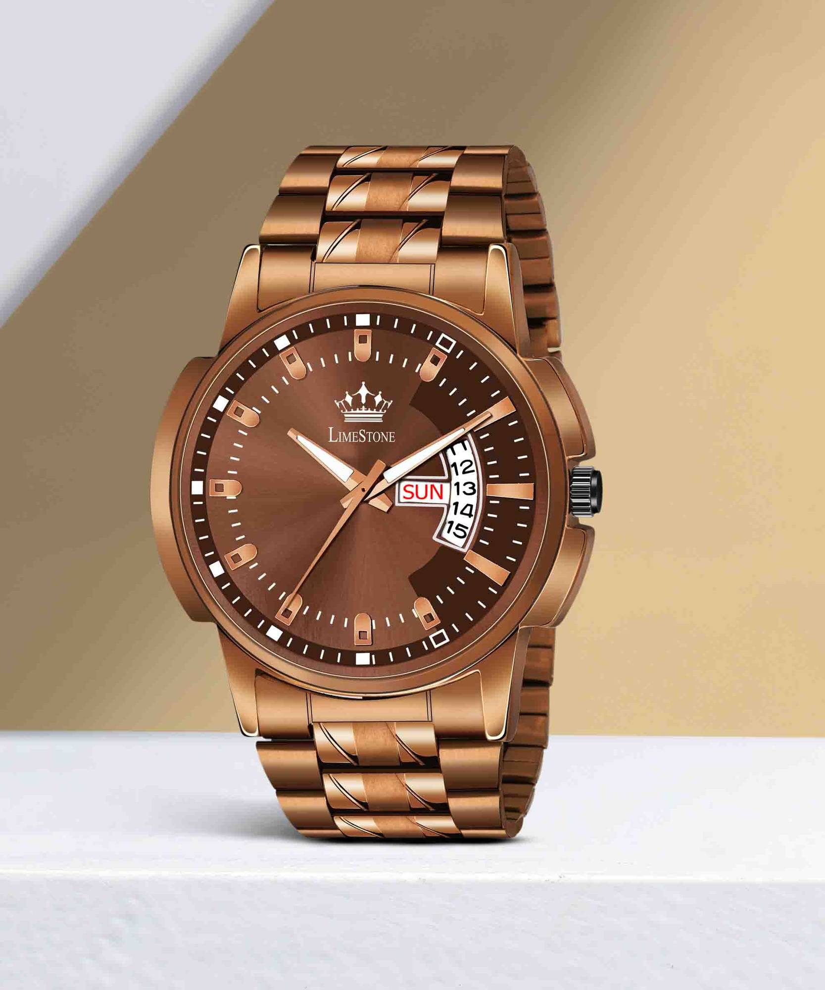 LIMESTONE Day & Date Functioning Original Copper Plated HMTS Quartz Analog Watch - For Men LS3039