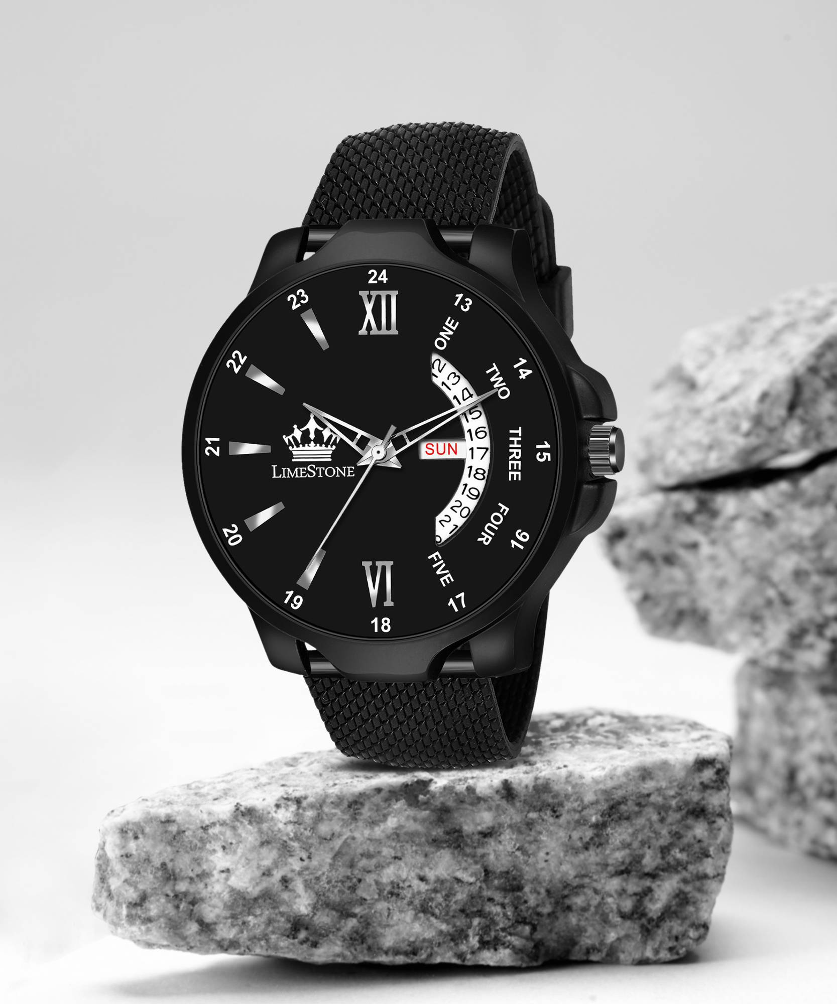 LIMESTONE Mesh Strap Day and Date Functions All Black Quartz Analog Watch - For Men LS2972
