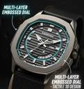 This striking LIMESTONE men's watch features a robust grey-plated watch case with a unique octagonal design, offering a modern and bold aesthetic. The watch is equipped with a comfortable and durable black silicone strap, secured by a matching black buckle, ensuring long-lasting wear and a secure fit.
