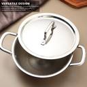 LIMETRO STEEL Triply 2.5 Liter Stainless Steel Kadai with Lid Kadhai 24 cm diameter with Lid 2.5 L capacity (Triply, Induction Bottom)