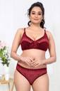 Bra & Panty Set Self Design Maroon, Black Lingerie Set