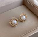 Gold Toned Elegant Circle Shape Pearl Stud Earrings Pearl Metal Stud Earring