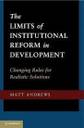 Developing countries commonly adopt reforms to improve their governments yet they usually fail to produce more functional and effective governments. Andrews argues that reforms often fail to make governments better because they are introduced as signals to gain short-term support. These signals introduce unrealistic best practices that do not fit developing country contexts and are not considered relevant by implementing agents. The result is a set of new forms that do not function. However, there are realistic solutions emerging from institutional reforms in some developing countries. Lessons from these experiences suggest that reform limits, although challenging to adopt, can be overcome by focusing change on problem solving through an incremental process that involves multiple agents.