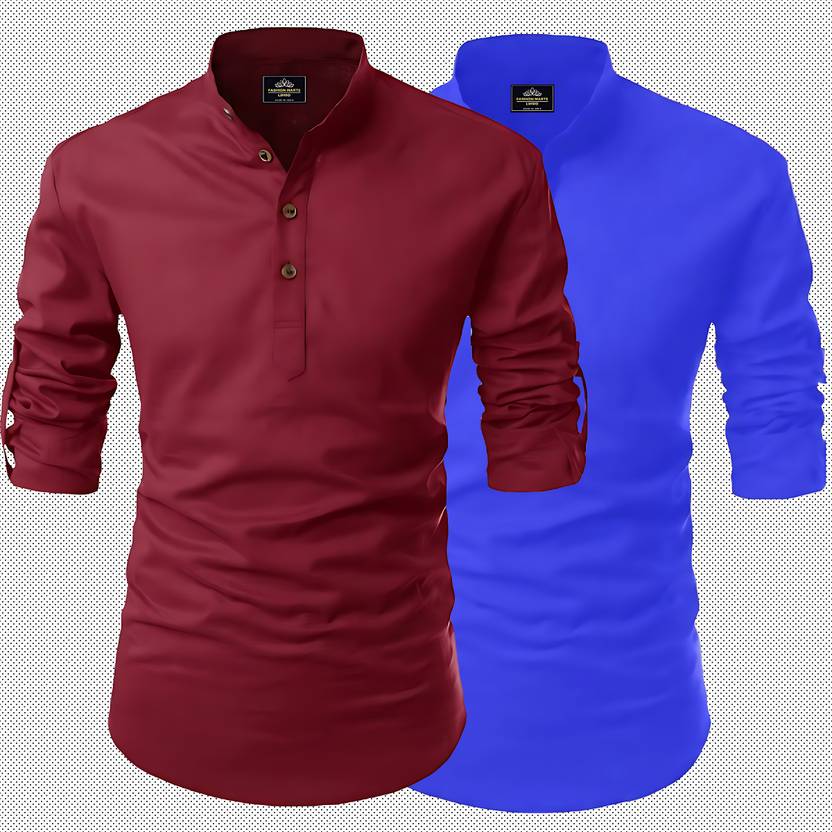 LIMRO Men Printed Straight Kurta (Maroon, Dark Blue)
