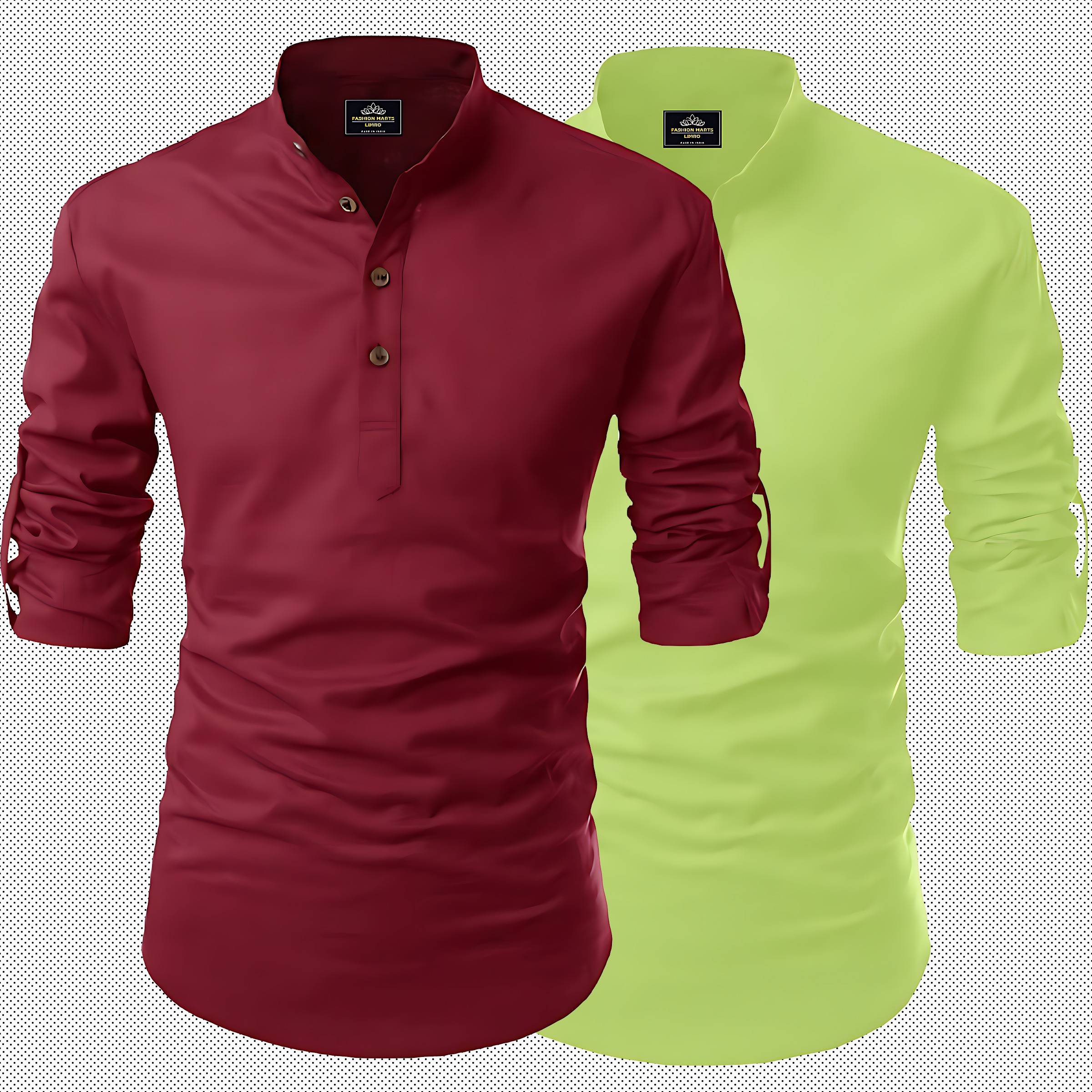 LIMRO Men Printed Straight Kurta (Maroon, Light Green)