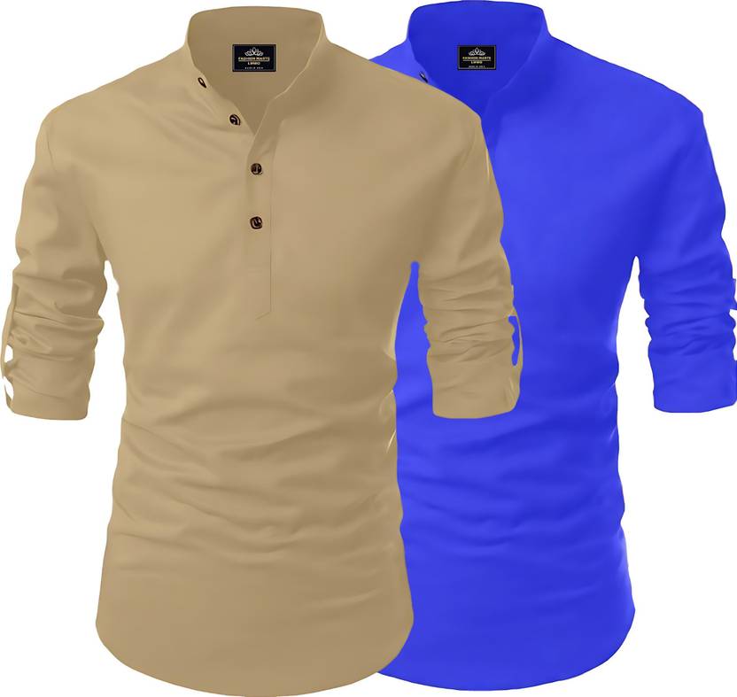 LIMRO Men Solid Straight Kurta (Gold, Dark Blue)