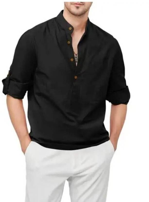 The STONE HEART Men's Black Cotton Blend Round Neck Short Kurta with Solid Printed Design is a modern and stylish addition to any man’s wardrobe. Crafted from a comfortable cotton blend fabric, this kurta offers both breathability and durability, making it perfect for daily wear in warm climates or casual settings.
