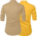 LIMRO Men Solid Straight Kurta (Gold, Multicolor)
