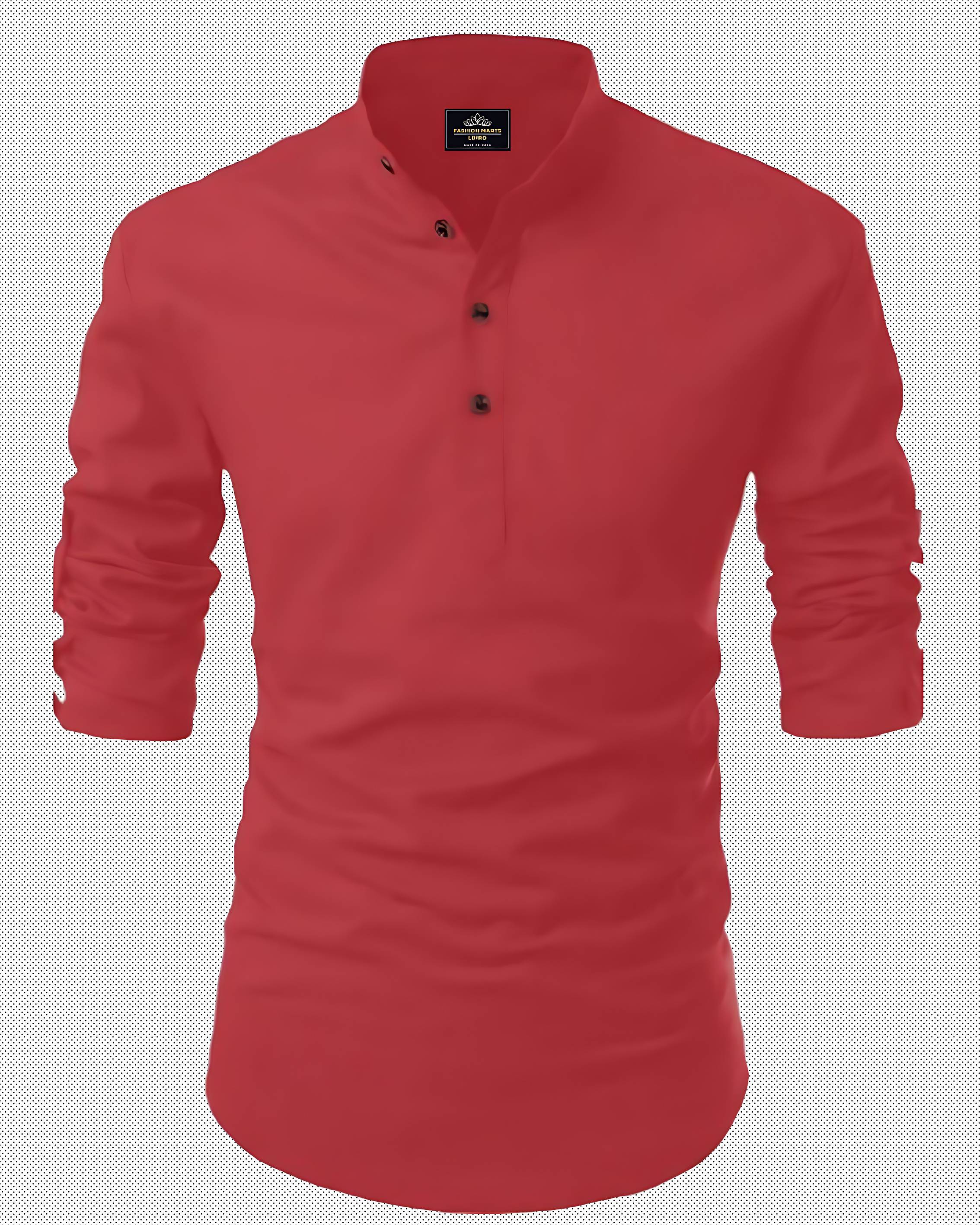 LIMRO Men Solid Cotton Blend Straight Kurta (Red)