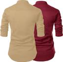 Pack of 2 Men Solid Cotton Blend Straight Kurta (Gold, Maroon)