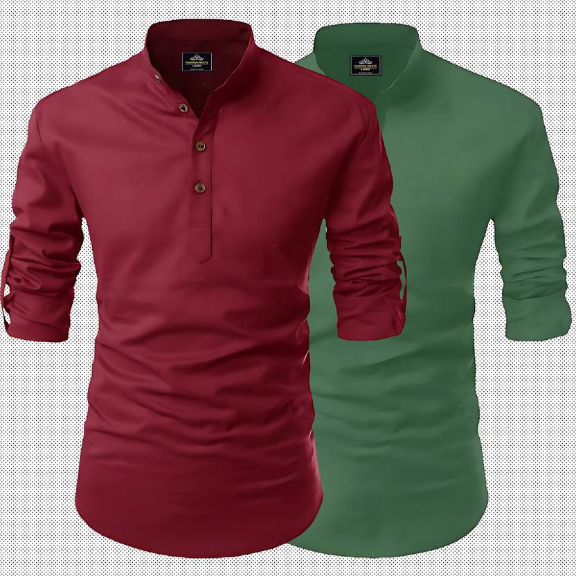 Men Solid Cotton Blend Straight Kurta (Maroon, Dark Green)