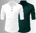 Pack of 2 Men Solid Cotton Blend Straight Kurta (White, Green)