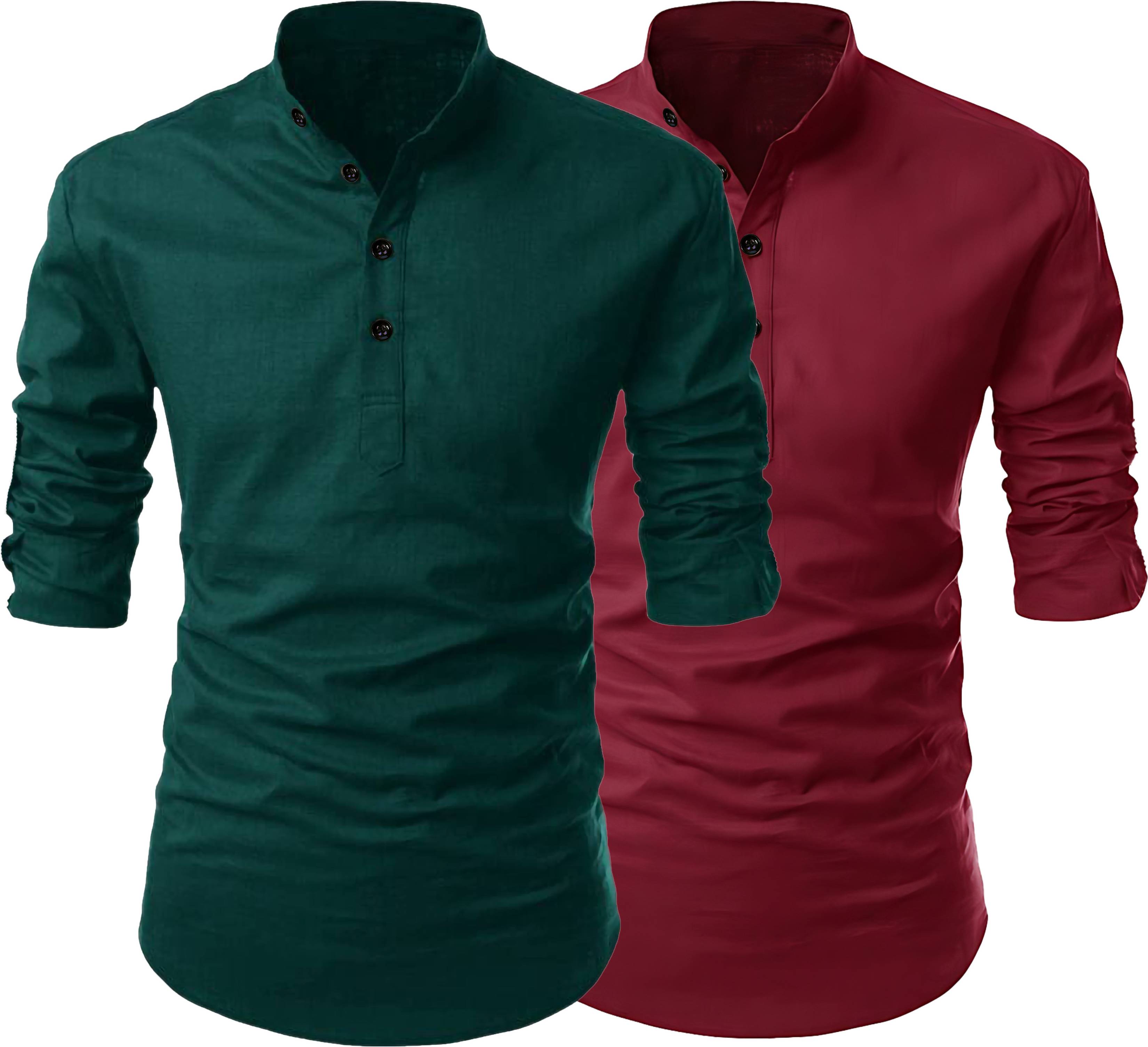 Fashion Marts Pack of 2 Men Solid Cotton Blend Straight Kurta  (Multicolor)
