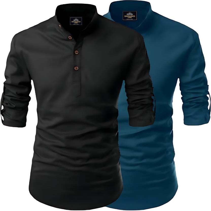 Fashion Marts Men Printed Straight Kurta (Black, Dark Green)
