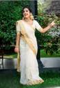 This trendy South Indian Kasavu cotton saree! Crafted from authentic, lightweight cotton, this beautiful saree features a stunning solid white with an elegant golden zari border. The intricate zari work adds a touch of opulence, making this saree perfect for festive occasions, pujas, weddings, or any special event.