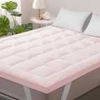 Linenovation Mattress Topper Single Size Breathable Mattress Cover (White, Pink)