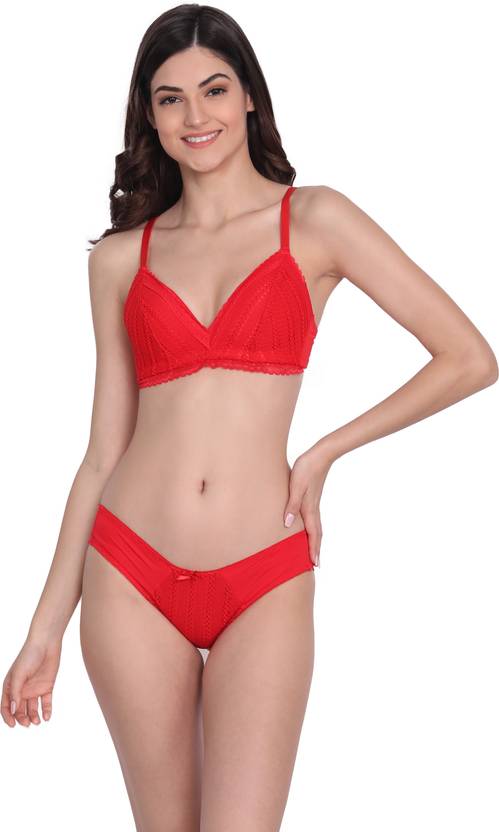 linge Bra & Panty Set Solid Red Lingerie Set
