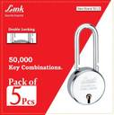 Link New Round 50Ls Set 5Pcs| Steel Body||Made in India Padlock (Silver)