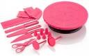 Cake Truntable with Decorative kit- 16 PC Set, Cake Shaping, Icing & Finising Scraper, Cake Serving & Cutting Knife, Cake Flower Shifting Scissors, Celebration Cake Cutting Knife, Cake Designing & Flowers Making Nozzle, Cake Flower Making Stand